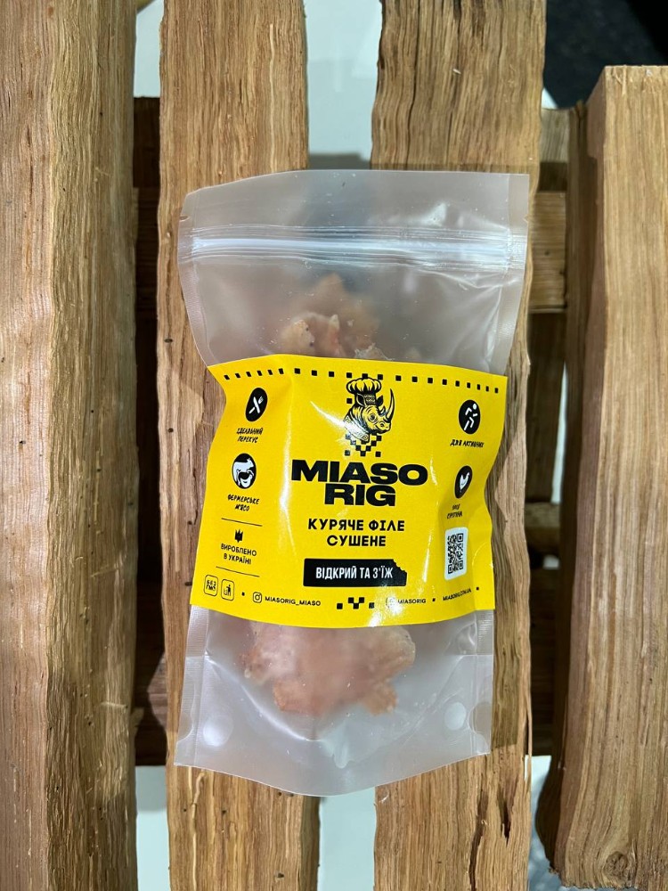 Сушене куряче філе зі смаком сиру – це натуральний білковий снек, вміст Білку 77г на 100 г продукту, виготовлений із відбірного м’яса без зайвого жиру та штучних добавок. Завдяки спеціальній технології сушіння м’ясо зберігає поживну цінність, легкість та хрустку текстуру.